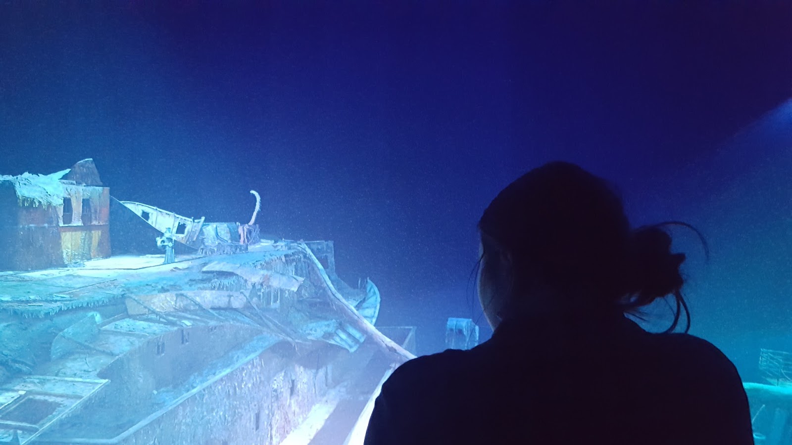 Was mir jedoch besonders gut gefallen hat, war, dass Herzstück der Ausstellung. Das 360-Grad-Panorama Bild. Es war riesig und man läuft eine Treppe nach oben, um auf eine Aussichtsplattform zu kommen und dann kann man auf das zerbrochene Schiff sehen. In dem Raum war alles ruhig, bis auf die Geräusche. Man hört das Lachen von Passagieren, man hört wie sie gerade beim Essen sitzen oder sich unterhalten. Ab und zu verändert sich das Licht und man hat eine andere Szene und irgendwie wirkt so alles viel realer und ich musste ehrlich die ein oder andere Träne vergießen.